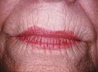 In some individuals the aging is most pronounced in the lips where multiple