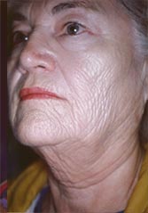 is manifested by fine wrinkles giving the appearance of "cracked dry river bed". Standard face lift surgery
