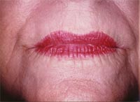 In some individuals the aging is most pronounced in the lips where multiple